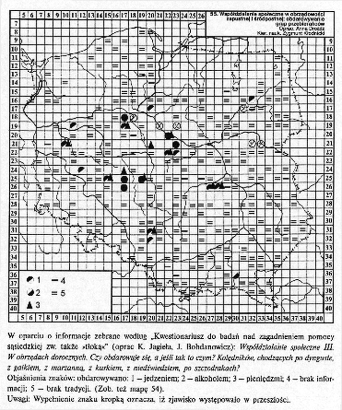 Komentarze do Polskiego Atlasu Etnograficznego t.7 : Pomoc wzajemna.Współdziałanie społeczne i pomoc sąsiedzka s.288 (mapa nr 55)