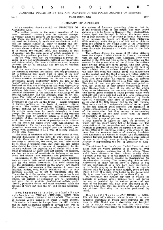 - Summary of articles/ Polska Sztuka Ludowa - Konteksty 1967 t.21 z.1