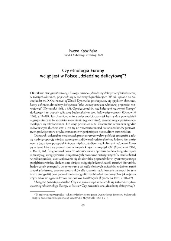 Czy etnologia Europy jest w Polsce "dziedziną deficytową"?/ Antropolog wobec współczesności