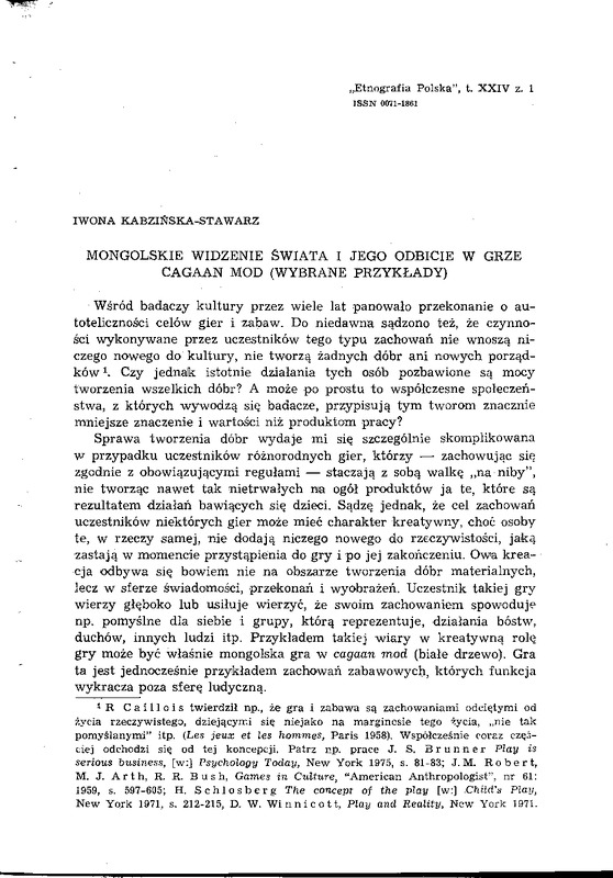 Mongolskie widzenie świata i jego odbicie w grze cagaan mod (wybrane przykłady) / ETNOGRAFIA POLSKA 1980 t.24 z.1