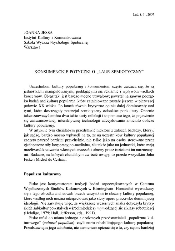 Konsumenckie potyczki o "laur semiotyczny" / LUD 2007 t.91