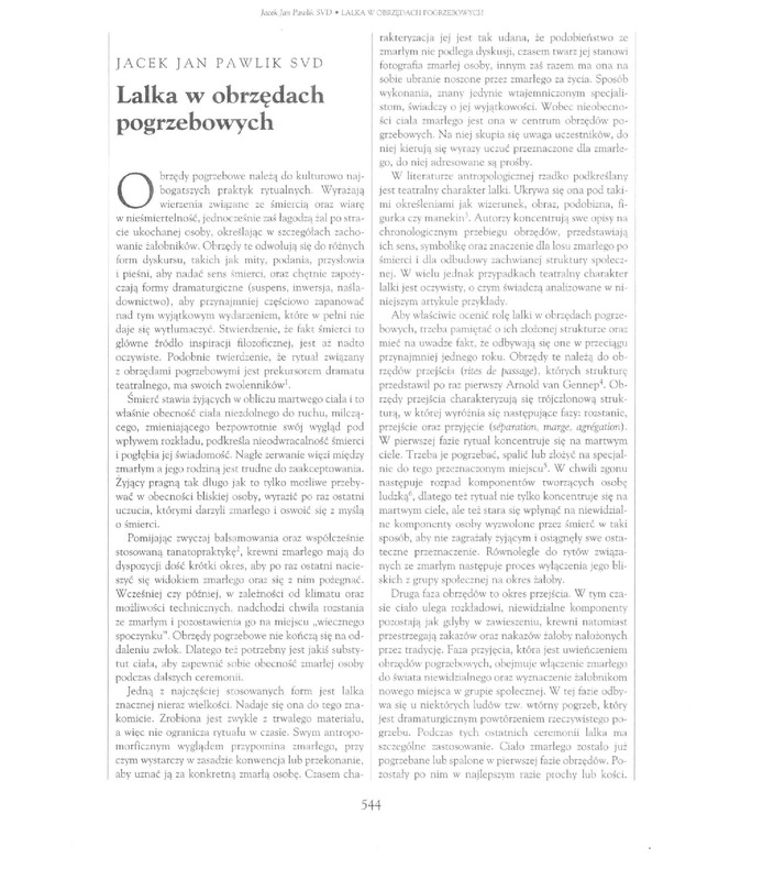 - Lalka w obrzędach pogrzebowych / Polska Sztuka Ludowa - Konteksty 2001 t.55 z.1-4