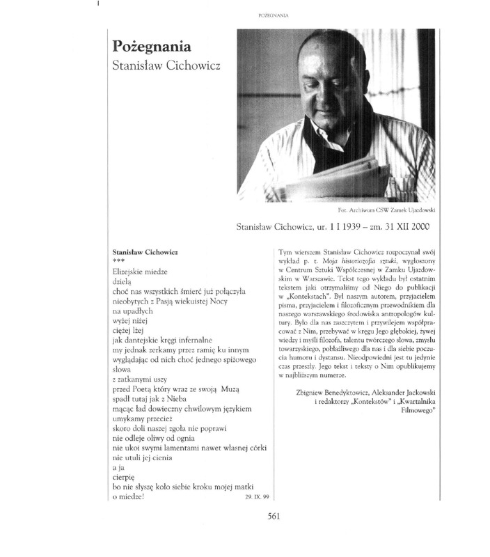 - Pożegnania. Stanisław Cichowicz / Polska Sztuka Ludowa - Konteksty 2001 t.55 z.1-4