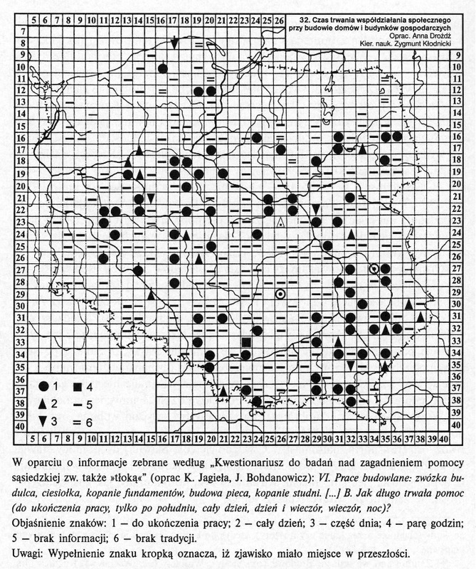 Czas trwania współdziałania społecznego przy budowie domów i budynków gospodarczych/ Komentarze do Polskiego Atlasu Etnograficznego (mapy)
