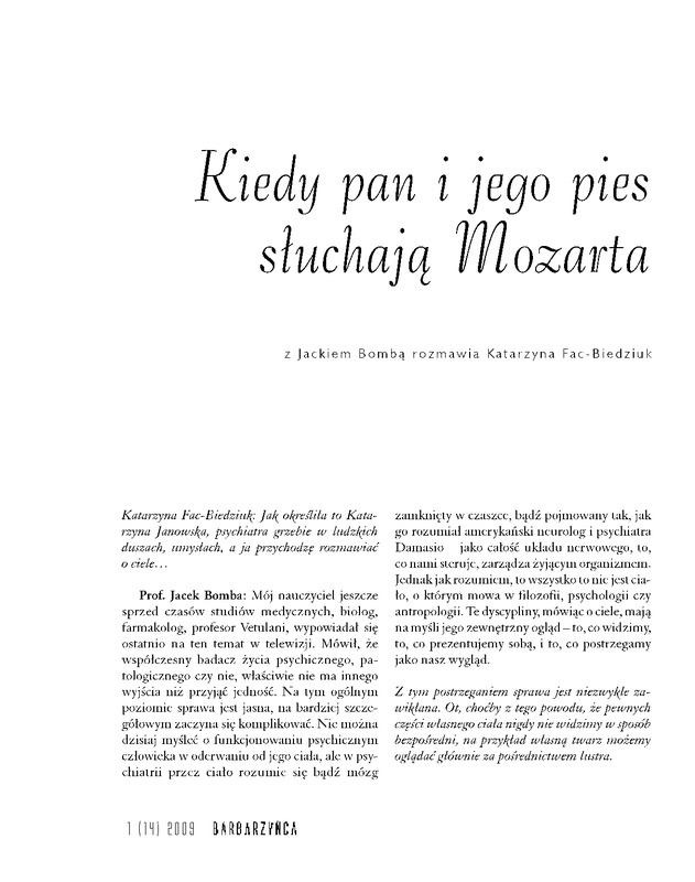- Kiedy pan i jego pies słuchają Mozarta/ Barbarzyńca 2009 nr 1 (14)