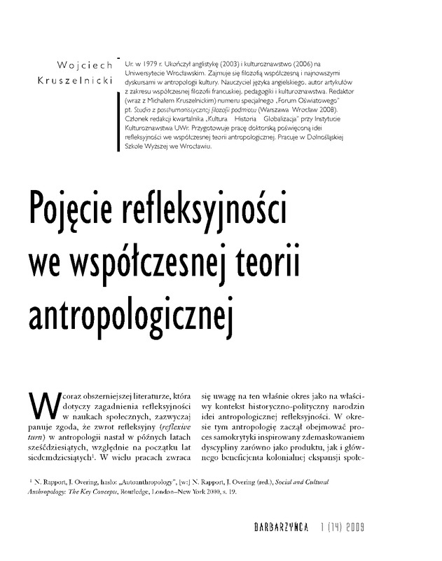 Pojęcie refleksyjności we współczesnej teorii antropologicznej/ Barbarzyńca 2009 nr 1 (14)