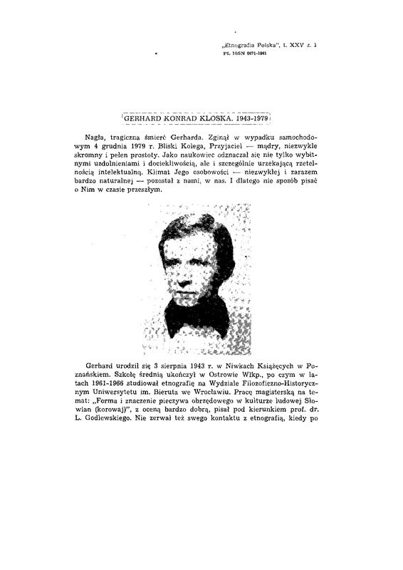 - Gerhard Konrad Kloska. 1943-1979 / ETNOGRAFIA POLSKA 1981 t.25 z.1