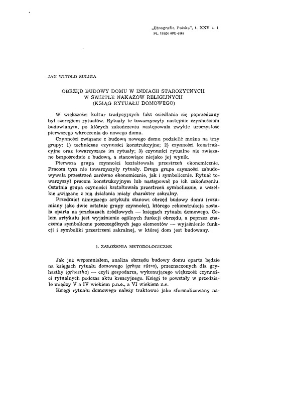 Obrzęd budowy domu w Indiach starożytnych w świetle nakazów religijnych (ksiąg rytuału domowego) / ETNOGRAFIA POLSKA 1981 t.25 z.1