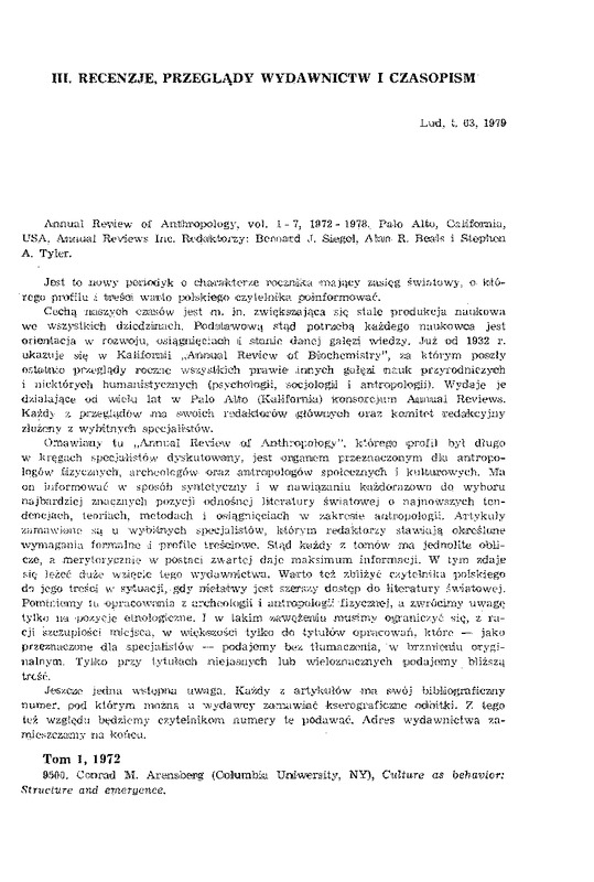 Recenzje, przeglądy wydawnictw i czasopism / LUD 1979 t.63