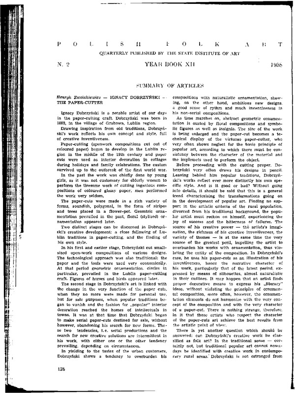 Streszczenia / Polska Sztuka Ludowa - Konteksty 1958 t.12 z.2