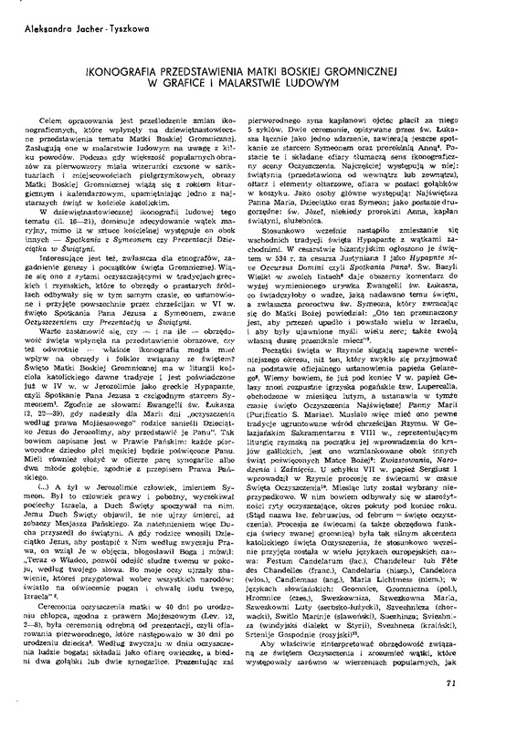 Ikonografia przedstawienia Matki Boskiej Gromnicznej w grafice i malarstwie ludowym / Polska Sztuka Ludowa - Konteksty 1980 t.34 z.2