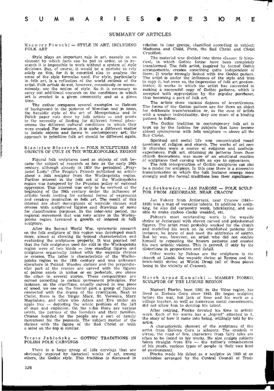 Summaries / Polska Sztuka Ludowa - Konteksty 1972 t.26 z.2