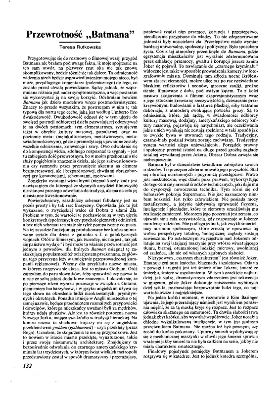 - Przewrotność "Batmana"; Zapis dyskusji o filmie "Batman" / Polska Sztuka Ludowa - Konteksty 1992 t.46 z.3-4