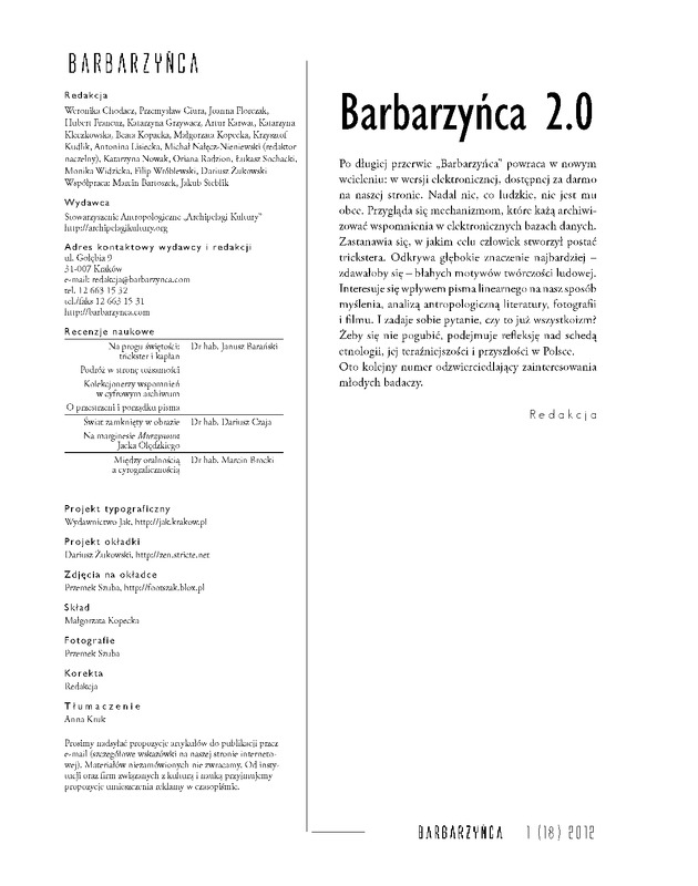 - Barbarzyńca - pismo antropologiczne, 2012 nr 1 (18)