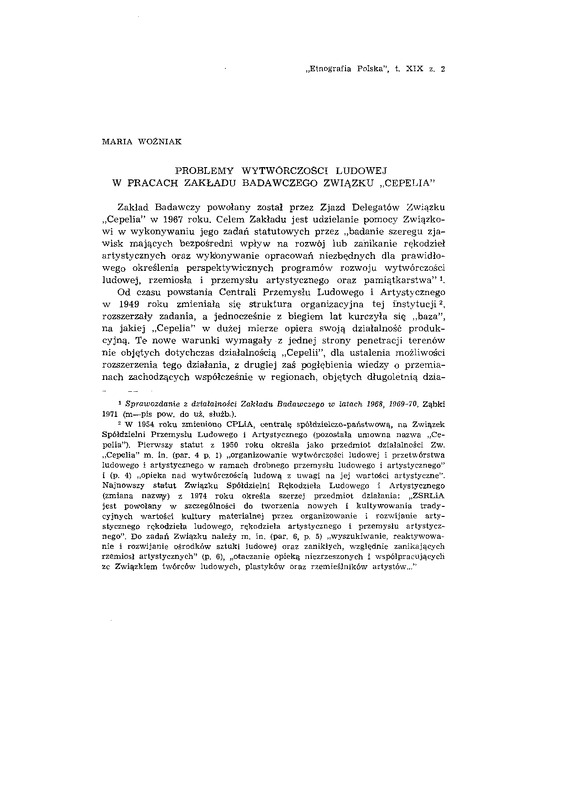 Problemy wytwórczości ludowej w pracach Zakładu Badawczego Związku "Cepelia" / ETNOGRAFIA POLSKA 1975 t.19 z.2
