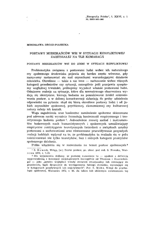 Postawy mieszkańców wsi w sytuacji konfliktowej zaistniałej na tle komasacji / ETNOGRAFIA POLSKA 1982 t.26 z.1