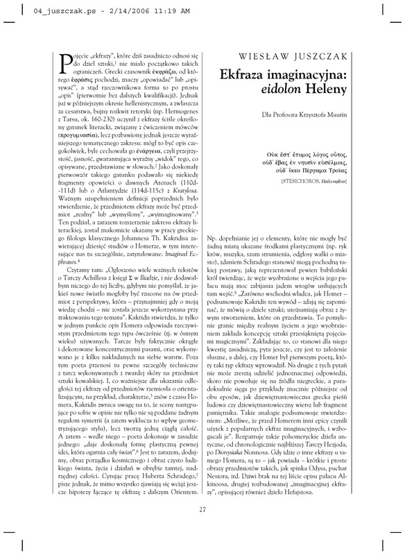 - Ekfraza imaginacyjna: 'eidolon' Heleny/ Polska Sztuka Ludowa - Konteksty 2005 t.59 z.3