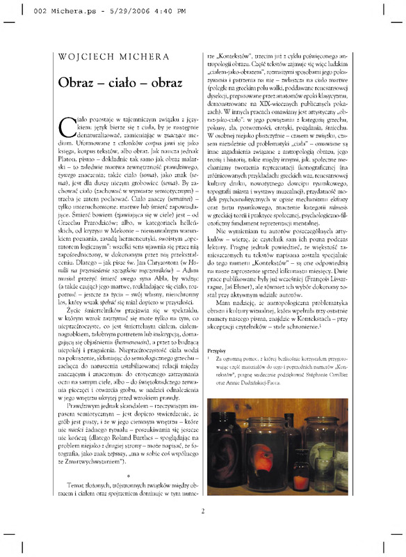 Obraz - ciało - obraz / Polska Sztuka Ludowa - Konteksty 2006 t.60 z.1