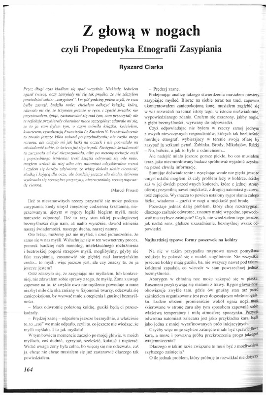 - Z głową w nogach czyli Propedeutyka Etnografii Zasypiania / Polska Sztuka Ludowa - Konteksty 1995 t.49 z.3-4