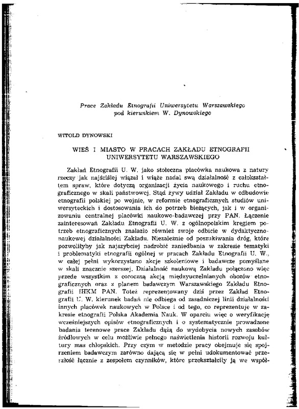 Wieś i miasto w pracach Zakładu Etnografii Uniwersytetu Warszawskiego / ETNOGRAFIA POLSKA 1959 t.2
