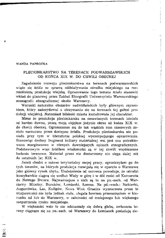 Plecionkarstwo na terenach podwarszawskich od końca XIX w. do chwili obecnej / ETNOGRAFIA POLSKA 1959 t.2