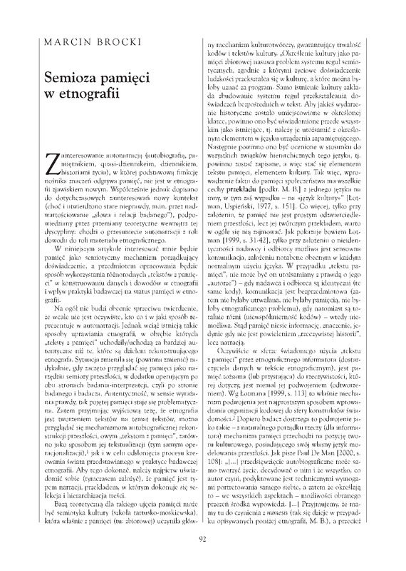 - Semioza pamięci w etnografii / Polska Sztuka Ludowa - Konteksty 2003 t.57 z.3-4