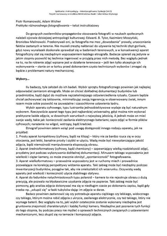 - Praktyka różnorodnego fotografowania - tekst instruktażowy / SAID