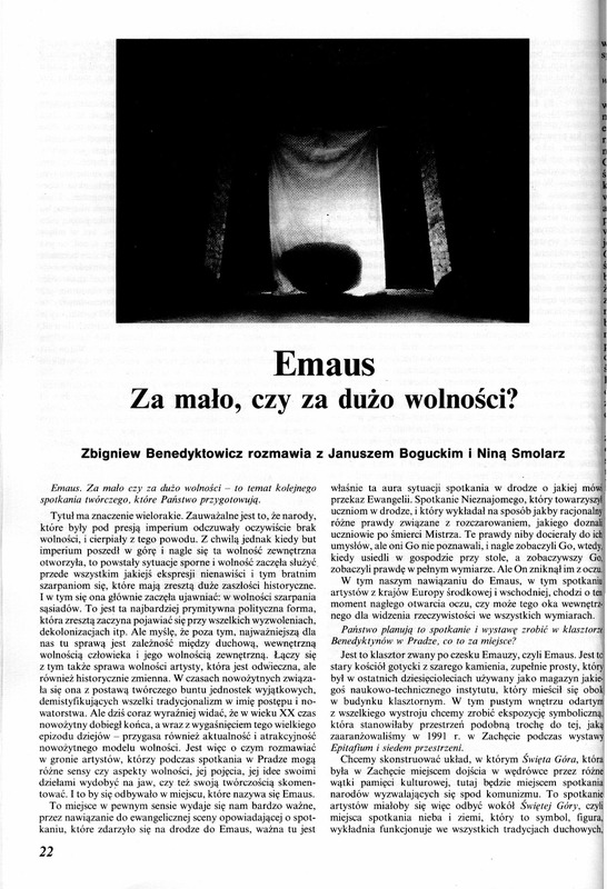 - Emaus. Za mało, czy za dużo wolności? / Polska Sztuka Ludowa - Konteksty 1993 t.47 z.1