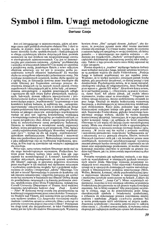 - Symbol i film.Uwagi metodologiczne / Polska Sztuka Ludowa - Konteksty 1992 t.46 z.3-4