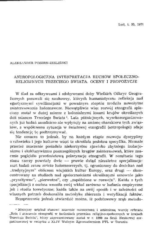 Antropologiczna interpretacja ruchów społeczno-religijnych trzeciego świata / LUD 1971 t. 55