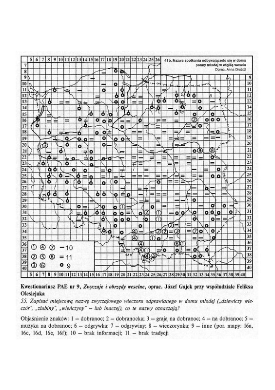 Komentarze do Polskiego Atlasu Etnograficznego t.8:Zwyczaje i obrzedy weselne cz.I: Od zalotów do ślubu cywilnego, red nauk. Agnieszka Pieńczak s.287 ( mapa 41 b nr )