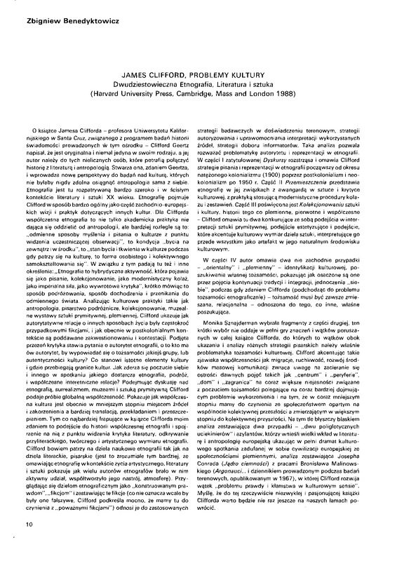 - James Clifford, Problemy kultury / Polska Sztuka Ludowa - Konteksty 1991 t.45 z.1