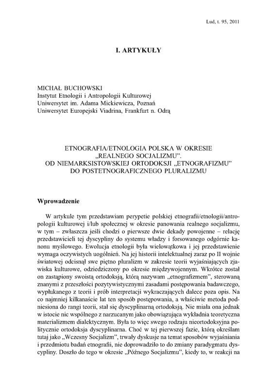 - Etnografia/etnologia polska w okresie "realnego socjalizmu"/ LUD 2011 t.95