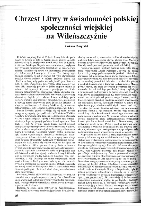 Chrzest Litwy w świadomości polskiej społeczności wiejskiej na Litwie / Polska Sztuka Ludowa - Konteksty 1993 t.47 z.3-4