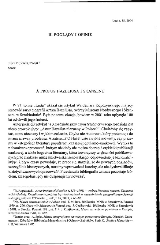 - A propos Hazeliusa i Skansenu / LUD 2004 t.88