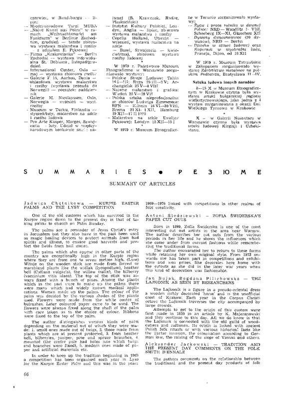 Summary of articles / Polska Sztuka Ludowa - Konteksty 1980 t.34 z.1