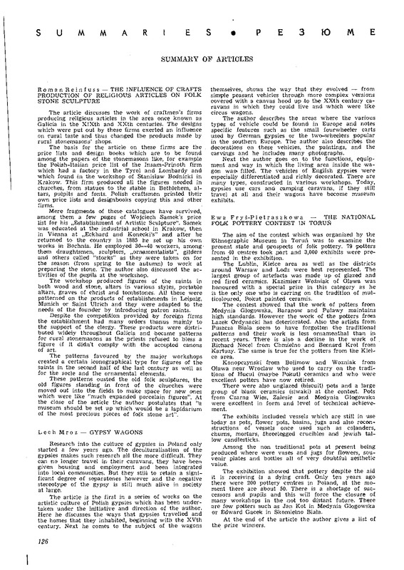 Summary of articles / Polska Sztuka Ludowa - Konteksty 1979 t.33 z.2