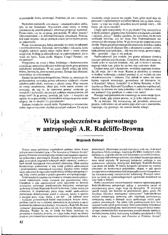 Wizja społeczeństwa pierwotnego w antropologii A.R. Radcliffe-Browna / Polska Sztuka Ludowa - Konteksty 1995 t.49 z.1