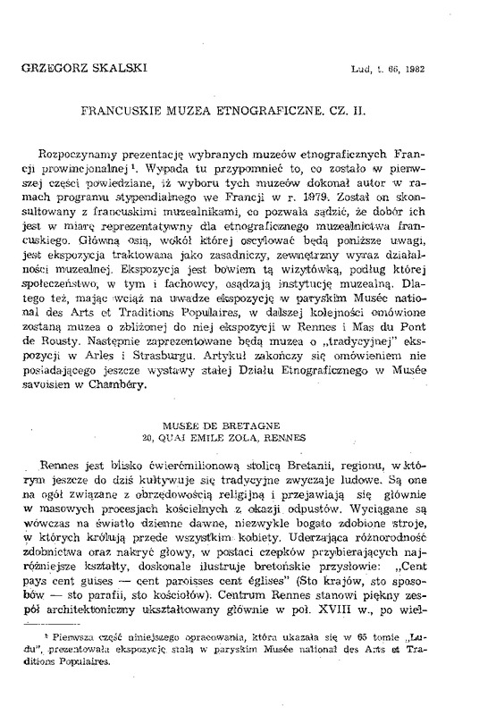 Francuskie muzea etnograficzne cz.II / LUD 1982 t.66