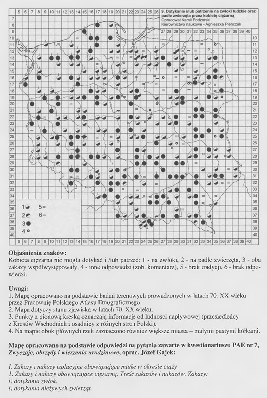 Dotykanie i/ lub patrzenie na zwłoki oraz na padłe zwierzęta przez kobietę ciężarną/ Komentarze do Polskiego Atlasu Etnograficznego (mapy)