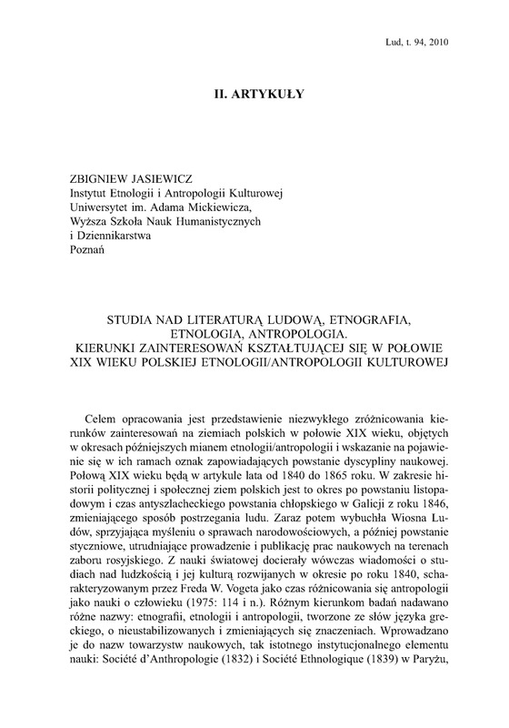 Studia nad literaturą ludową, etnografia, etnologia, antropologia/ LUD 2010 t.94
