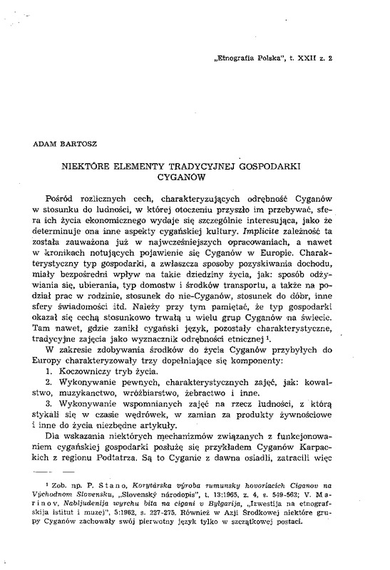 - Niektóre elementy tradycyjnej gospodarki Cyganów / ETNOGRAFIA POLSKA 1978 t.22 z.2