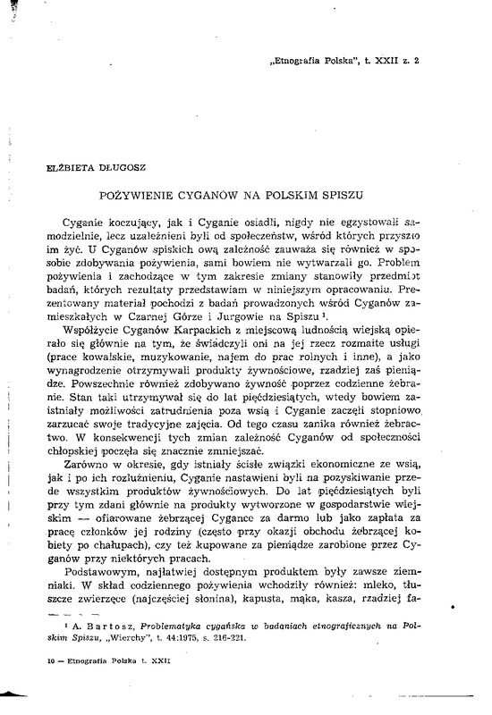 - Pożywienie Cyganów na polskim Spiszu / ETNOGRAFIA POLSKA 1978 t.22 z.2