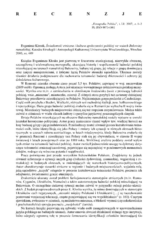 - Recenzje / ETNOGRAFIA POLSKA 2007 t.51