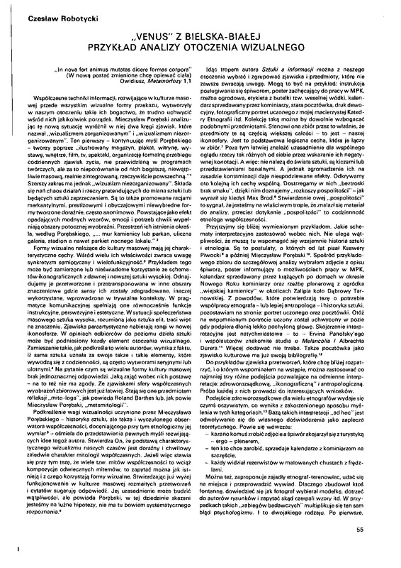- Venus z Bielska-Białej. Przykład analizy otoczenia wizualnego / Polska Sztuka Ludowa - Konteksty 1991 t.45 z.2