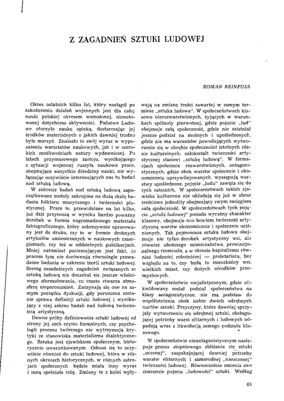 - Polska Sztuka Ludowa 1952 t.6 z.2 ; s.65-67