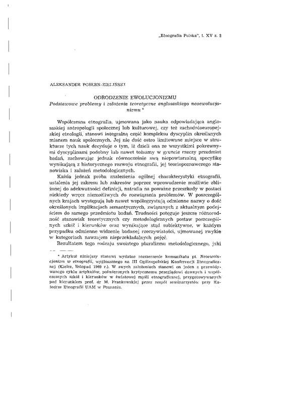 Odrodzenie ewolucjonizmu / ETNOGRAFIA POLSKA 1971 t.15 z.2
