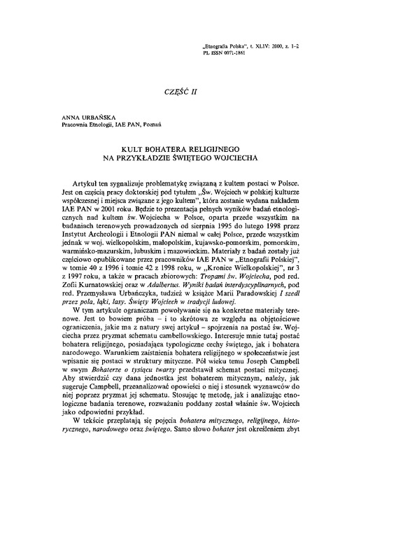 Kult bohatera religijnego na przykładzie świętego Wojciecha / ETNOGRAFIA POLSKA 2000 t.44