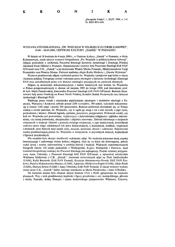 - Kronika / ETNOGRAFIA POLSKA 2000 t.44