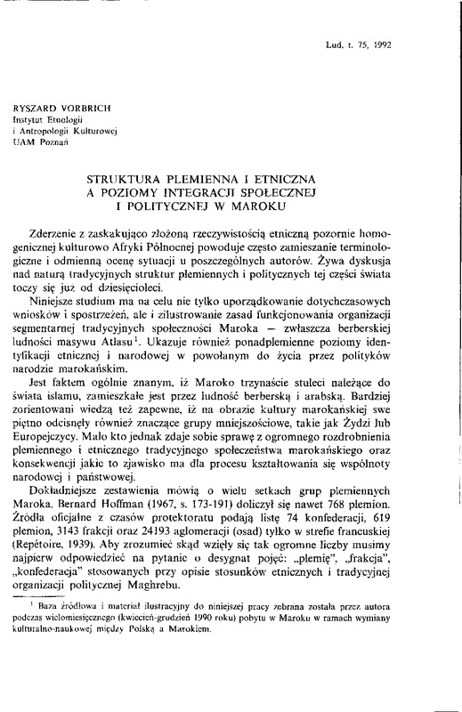 Struktura plemienna i etniczna a poziomy integracji społecznej i etnicznej w Maroku / LUD 1992 t.75
